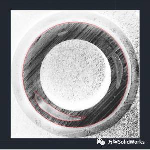 ● 体积收缩率-从SOLIDWORKS Plastics的模拟结果与实际产品比较,实际产品经过切割机切开之后,以影像处理方式将内部空孔明显化,在模拟结果当中可以看出体积收缩在进浇处的发生率比较高,跟实际产品比较可以看出与模拟结果相近似,都有出现大片体积收缩和空孔的区域,因此模拟结果是值得参考的(图8)。