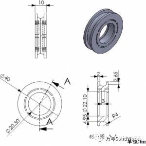 本案例产品为门窗辊轮,主要用途为门窗的带动零件,本产品为一模四穴,辊轮尺寸直径40mm,高度10mm(图2)。