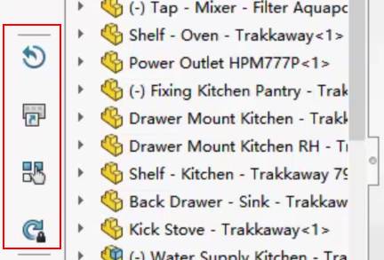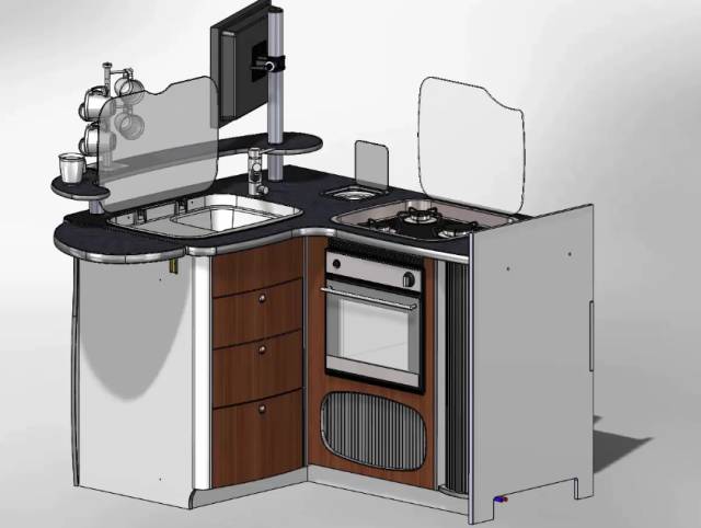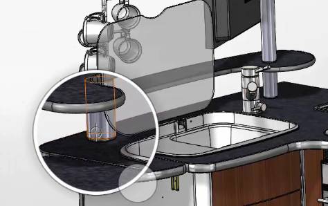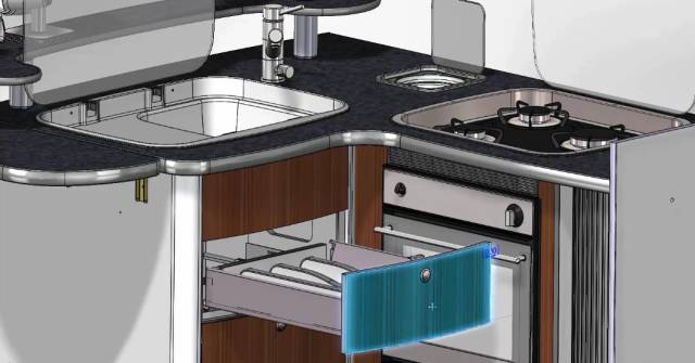 在此示例中我们将检查抽屉和烤箱门之间是否存在干涉,使用移动零部件,可以在屏幕上用手指进行选择,然后用手指拖动,抽屉可以在它的运动范围内移动并且我们可以看到抽屉和烤箱门之间不存在任何干涉。