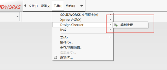 检查激活的文档。SOLIDWORKS Design Checker 使用编制检查要求文件来评估文档。