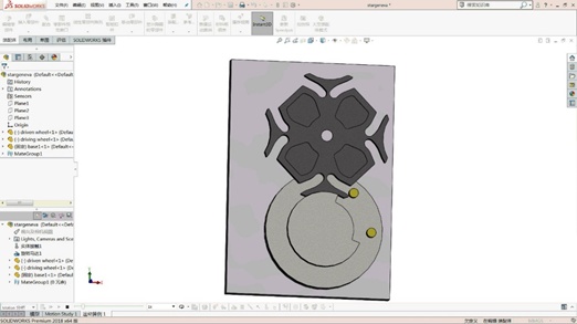 在处理间歇类运动时零件的接触不停变化,SOLIDWORKS Motion中的“接触”便是可以模拟真实的零件之间的相触关系,从而实现机构运动的仿真。